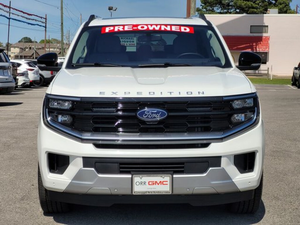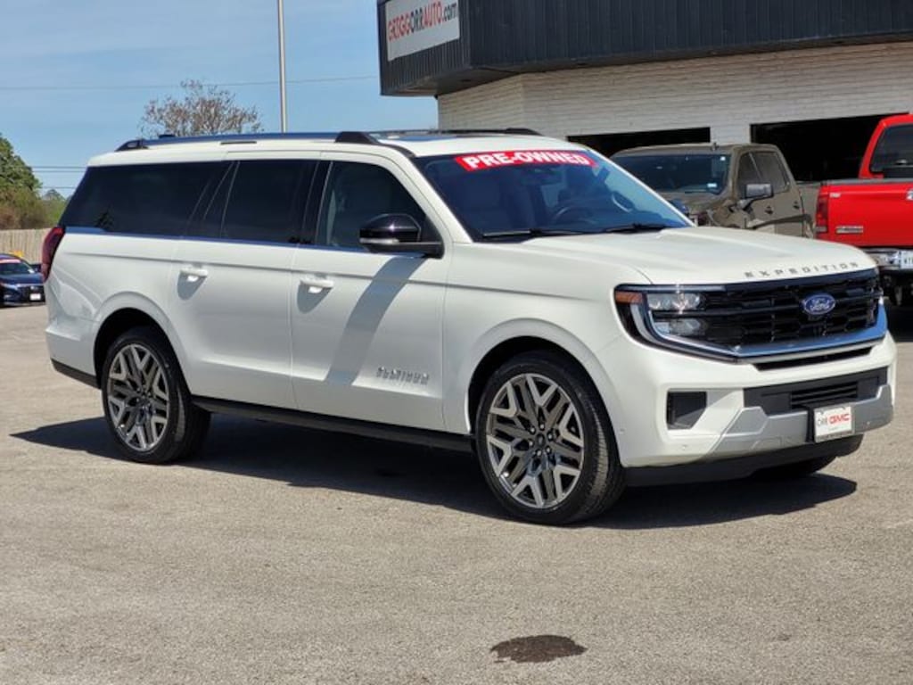 This 2025 Ford Expedition Max comes equipped with Driver's Package (Continuous Control Damping Suspension, Radio: B&O Unleashed Sound System by Bang & Olufsen, and SiriusXM w/360L), Equipment Group 600A Standard Package (2nd Row Power-Folding Captain's Chairs), Platinum Ultimate Interior Package, Platinum Ultimate Package (Black Headlamp Bezel w/Satin Trim Applique, BlueCruise Equipped (1-Year Plan), Carbon Black Front Bumper w/Lit Grille Bar, Engine Sound Enhancer, Front Door Scuff Plates w/Met Insert & Bright Rear, High Flow Exhaust System, Multicontour Active Motion Lthr Frnt Captains Chairs, Polished Stainless Steel Beltline Molding, Rear Seat Radio Controls, Rear Side Windows Laminated Glass, Satin Aluminum Expedition Lettering On Side & Hood, Satin Aluminum Platinum Badge On Tailgate, and Signature Grille Lighting), Navigation System, 10 Speakers, 3.73 Axle Ratio, 3rd row seats: split-bench, 4-Wheel Disc Brakes, ABS brakes, Adjustable pedals, Air Conditioning, Alloy wheels, AM/FM radio: SiriusXM with 360L, Apple CarPlay/Android Auto, Auto High-beam Headlights, Auto-dimming door mirrors, Auto-dimming Rear-View mirror, Automatic temperature control, Brake assist, Bumpers: body-color, Compass, Delay-off headlights, Driver door bin, Driver vanity mirror, Dual front impact airbags, Dual front side impact airbags, Electronic Stability Control, Emergency communication system: 911 Assist, Exterior Parking Camera Rear, Four wheel independent suspension, Front anti-roll bar, Front Bucket Seats, Front Center Armrest, Front dual zone A/C, Front License Plate Bracket, Front reading lights, Fully automatic headlights, Garage door transmitter, Genuine wood dashboard insert, Genuine wood door panel insert, Heated & Ventilated Leather Front Captain's Chairs, Heated door mirrors, Heated front seats, Heated rear seats, Heated steering wheel, Illuminated entry, Leather steering wheel, Low tire pressure warning, Memory seat, Occupant sensing airbag, Outside temperature display, Overhead airbag, Overhead console, Panic alarm, Passenger door bin, Passenger vanity mirror, Pedal memory, Power door mirrors, Power driver seat, Power moonroof: Vista Roof, Power passenger seat, Power steering, Power windows, Radio data system, Radio: B&O Sound System by Bang & Olufsen, Rain sensing wipers, Rear air conditioning, Rear anti-roll bar, Rear reading lights, Rear window defroster, Rear window wiper, Reclining 3rd row seat, Remote keyless entry, Security system, Speed control, Speed-sensing steering, Speed-Sensitive Wipers, Split folding rear seat, Spoiler, Steering wheel memory, Steering wheel mounted audio controls, Tachometer, Telescoping steering wheel, Tilt steering wheel, Traction control, Trip computer, Turn signal indicator mirrors, Variably intermittent wipers, Ventilated front seats, Voltmeter, Wheels: 20" Ebony Bright Machined Aluminum, and Wheels: 24" Tarnished Dark Metallic (DISC) CARFAX One-Owner. Carfax no accidents, 2nd Row Power-Folding Captain's Chairs, Black Headlamp Bezel w/Satin Trim Applique, BlueCruise Equipped (1-Year Plan), Carbon Black Front Bumper w/Lit Grille Bar, Continuous Control Damping Suspension, Driver's Package, Engine Sound Enhancer, Equipment Group 600A Standard Package, Front Door Scuff Plates w/Met Insert & Bright Rear, High Flow Exhaust System, Multicontour Active Motion Lthr Frnt Captains Chairs, Navigation System, Platinum Ultimate Interior Package, Platinum Ultimate Package, Polished Stainless Steel Beltline Molding, Radio: B&O Unleashed Sound System by Bang & Olufsen, Rear Seat Radio Controls, Rear Side Windows Laminated Glass, Satin Aluminum Expedition Lettering On Side & Hood, Satin Aluminum Platinum Badge On Tailgate, Signature Grille Lighting.