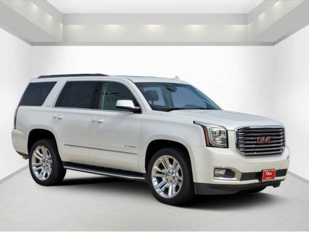 This 2018 GMC Yukon comes equipped with Enhanced Driver Alert Package (Forward Collision Alert, IntelliBeam Automatic High Beam On/Off Headlamps, Lane Keep Assist w/Lane Departure Warning, and Low Speed Forward Automatic Braking), License Plate Front Mounting Package, Memory Package, Open Road Package (Power Tilt-Sliding Sunroof w/Express-Open/Close, Radio: AM/FM/SiriusXM w/Navigation, Rear Seat Blu-Ray/DVD Entertainment System, CD Player, SiriusXM NavTraffic, and SiriusXM Satellite Radio), Preferred Equipment Group 4SA (4-Wheel Antilock Disc Brakes, 5 Auxiliary 12-volt Power Outlets, Black Assist Steps w/Chrome Strip, Hands Free Power Liftgate, Heated Leather-Wrapped Steering Wheel, Inside Rear-View Auto-Dimming Mirror, Lane Change Alert w/Side Blind Zone Alert, OnStar 4G LTE, OnStar Basic Plan For 5 Years, Passive Entry System, Power Release 2nd Row 60/40 Split-Folding Bench Seat, Power Tilt & Telescopic Steering Column, Power-Adjustable Pedals For Accelerator & Brake, Push Button Keyless Start, Rear Cross-Traffic Alert, Universal Home Remote, and Remote Keyless Entry), Premium Edition (22 6-Spoke Split Chrome (LPO) Wheels, Bright Bodyside Moldings, Chrome Grille Insert (LPO), Polished Exhaust Tip, and Wheels: 22 x 9 Steel Interim (LPO)), Premium Smooth Ride Suspension Package, 3.08 Rear Axle Ratio, 3rd row seats: split-bench, 4-Wheel Disc Brakes, 9 Speakers, ABS brakes, Adjustable pedals, Air Conditioning, Alloy wheels, AM/FM radio: SiriusXM, Apple CarPlay/Android Auto, Auto High-beam Headlights, Auto-dimming door mirrors, Auto-dimming Rear-View mirror, Automatic temperature control, Bose Premium 9-Speaker System, Brake assist, Bumpers: body-color, CD player, Compass, Delay-off headlights, Driver door bin, Driver vanity mirror, Dual front impact airbags, Dual front side impact airbags, Electronic Stability Control, Emergency communication system: OnStar Guidance, Exterior Parking Camera Rear, Front anti-roll bar, Front Bucket Seats, Front Center Armrest, Front dual zone A/C, Front fog lights, Front reading lights, Front wheel independent suspension, Full-Feature Reclining Bucket Seats, Fully automatic headlights, Garage door transmitter: HomeLink, Heated & Ventilated Driver & Front Passenger Seats, Heated door mirrors, Heated front seats, Heated rear seats, Heated steering wheel, Illuminated entry, Low tire pressure warning, Memory seat, Occupant sensing airbag, Outside temperature display, Overhead airbag, Overhead console, Panic alarm, Passenger door bin, Passenger vanity mirror, Pedal memory, Perforated Leather-Appointed Seat Trim, Power door mirrors, Power driver seat, Power Liftgate, Power passenger seat, Power Release Second Row Bucket Seats, Power steering, Power windows, Premium audio system: IntelliLink, Radio: AM/FM/SiriusXM, Rain sensing wipers, Rear air conditioning, Rear anti-roll bar, Rear reading lights, Rear seat center armrest, Rear window defroster, Rear window wiper, Remote keyless entry, Roof rack: rails only, Security system, Speed control, Speed-sensing steering, Split folding rear seat, Spoiler, Steering wheel memory, Steering wheel mounted audio controls, Tachometer, Telescoping steering wheel, Tilt steering wheel, Traction control, Trip computer, Turn signal indicator mirrors, Variably intermittent wipers, Ventilated front seats, Voltmeter, and Wheels: 18 x 8.5 Bright Machined Aluminum. Priced below KBB Fair Purchase Price! 22 6-Spoke Split Chrome (LPO) Wheels, 4-Wheel Antilock Disc Brakes, 5 Auxiliary 12-volt Power Outlets, Black Assist Steps w/Chrome Strip, Bright Bodyside Moldings, Chrome Grille Insert (LPO), Enhanced Driver Alert Package, Forward Collision Alert, Hands Free Power Liftgate, Heated Leather-Wrapped Steering Wheel, Inside Rear-View Auto-Dimming Mirror, IntelliBeam Automatic High Beam On/Off Headlamps, Lane Change Alert w/Side Blind Zone Alert, Lane Keep Assist w/Lane Departure Warning, License Plate Front Mounting Package, Low Speed