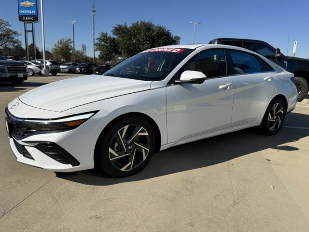 CARFAX One-Owner. Clean CARFAX. 31/40 City/Highway MPG White 2024 Hyundai Elantra Limited I4 FWD CVT The 2024 Hyundai Elantra comes with the following features; Option Group 01, 17 x 7.0J Alloy Wheels, 4-Wheel Disc Brakes, 8 Speakers, ABS brakes, Air Conditioning, Alloy wheels, AM/FM radio: SiriusXM, Apple CarPlay & Android Auto, Auto High-beam Headlights, Auto-dimming Rear-View mirror, Automatic temperature control, Brake assist, Bumpers: body-color, Delay-off headlights, Driver door bin, Driver vanity mirror, Dual front impact airbags, Dual front side impact airbags, Electronic Stability Control, Emergency communication system: Bluelink+, Front anti-roll bar, Front Bucket Seats, Front Center Armrest, Front dual zone A/C, Front reading lights, Front wheel independent suspension, Fully automatic headlights, Heated door mirrors, Heated Front Bucket Seats, Heated front seats, Illuminated entry, Leatherette Seats, Low tire pressure warning, Navigation System, Occupant sensing airbag, Outside temperature display, Overhead airbag, Overhead console, Panic alarm, Passenger door bin, Passenger vanity mirror, Power door mirrors, Power driver seat, Power moonroof, Power steering, Power windows, Radio: AM/FM/HD/SiriusXM Display Audio, Rear seat center armrest, Rear side impact airbag, Rear window defroster, Remote keyless entry, Security system, Speed control, Speed-sensing steering, Split folding rear seat, Steering wheel mounted audio controls, Tachometer, Telescoping steering wheel, Tilt steering wheel, Traction control, Trip computer, Turn signal indicator mirrors, and Variably intermittent wipers.