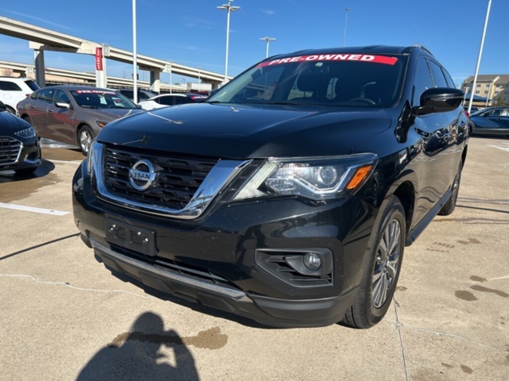 This 2020 Nissan Pathfinder comes equipped with the following features 3rd row seats: bench, 4-Wheel Disc Brakes, 5.25 Axle Ratio, 6 Speakers, ABS brakes, Air Conditioning, Alloy wheels, AM/FM radio: SiriusXM, Auto-dimming Rear-View mirror, Automatic temperature control, Blind Spot Warning, Brake assist, Bumpers: body-color, Carpeted Floor Mats (4-pc Set), CD player, Cloth Seating Surfaces, Compass, Delay-off headlights, Driver door bin, Driver vanity mirror, Dual front impact airbags, Dual front side impact airbags, Electronic Stability Control, Four wheel independent suspension, Front anti-roll bar, Front Bucket Seats, Front Center Armrest, Front dual zone A/C, Front fog lights, Front reading lights, Fully automatic headlights, Garage door transmitter: HomeLink, Illuminated entry, Leather Shift Knob, Leather steering wheel, Low tire pressure warning, Occupant sensing airbag, Outside temperature display, Overhead airbag, Overhead console, Panic alarm, Passenger door bin, Passenger vanity mirror, Power door mirrors, Power driver seat, Power steering, Power windows, Radio data system, Radio: AM/FM/CD Audio System w/NissanConnect, Rear air conditioning, Rear anti-roll bar, Rear Parking Sensors, Rear reading lights, Rear seat center armrest, Rear window defroster, Rear window wiper, Reclining 3rd row seat, Remote keyless entry, Security system, Speed control, Speed-sensing steering, Speed-Sensitive Wipers, Split folding rear seat, Spoiler, Steering wheel mounted audio controls, Tachometer, Telescoping steering wheel, Tilt steering wheel, Traction control, Trip computer, Turn signal indicator mirrors, Variably intermittent wipers, and Wheels: 18" x 7.5 J Machined Aluminum-Alloy. Clean CARFAX. 2020 Nissan Pathfinder SV FWD V6